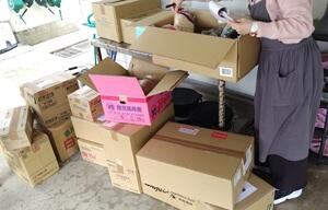 港に到着した食材を職員が車で運搬し,学校で検品作業などを行います。毎月1回のこの作業は宝島学園職員のチームワークの高まりにもつながっていると実感しています。